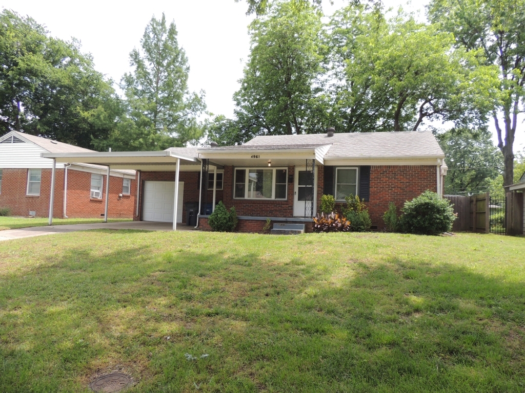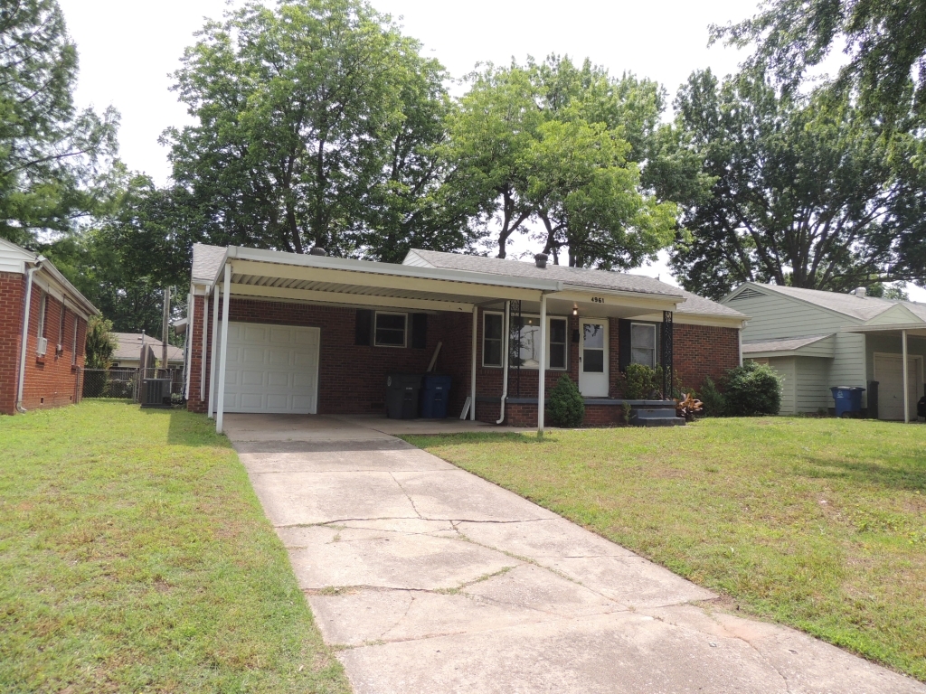 Located in Riverview Village. Completely Remodeled- new energy efficient windows and doors. Refinished red oak hard wood floors. Central heat and air. Front and back covered patios. One car garage with automatic opener. 2 car carport and pad for secure motorcycle lock down. Storage building in fully fenced back yard. New plantation blinds. Quick access to I-44, Riverside, and Brookside.